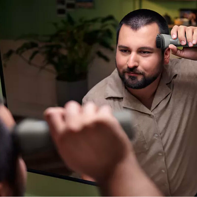 Funda blanda con cremallera, cepillo de limpieza, cable USB-A (adaptador no incluido), recortador de acero, recortador nariz/orejas, afeitadora corporal con protector, recortador de precisión, 2 peines para barba corta, peine ajustable 3-7 mm, 3 peines para el pelo, 1 peine para el cuerpo