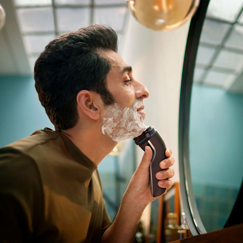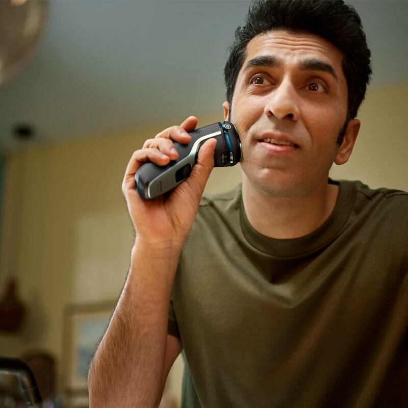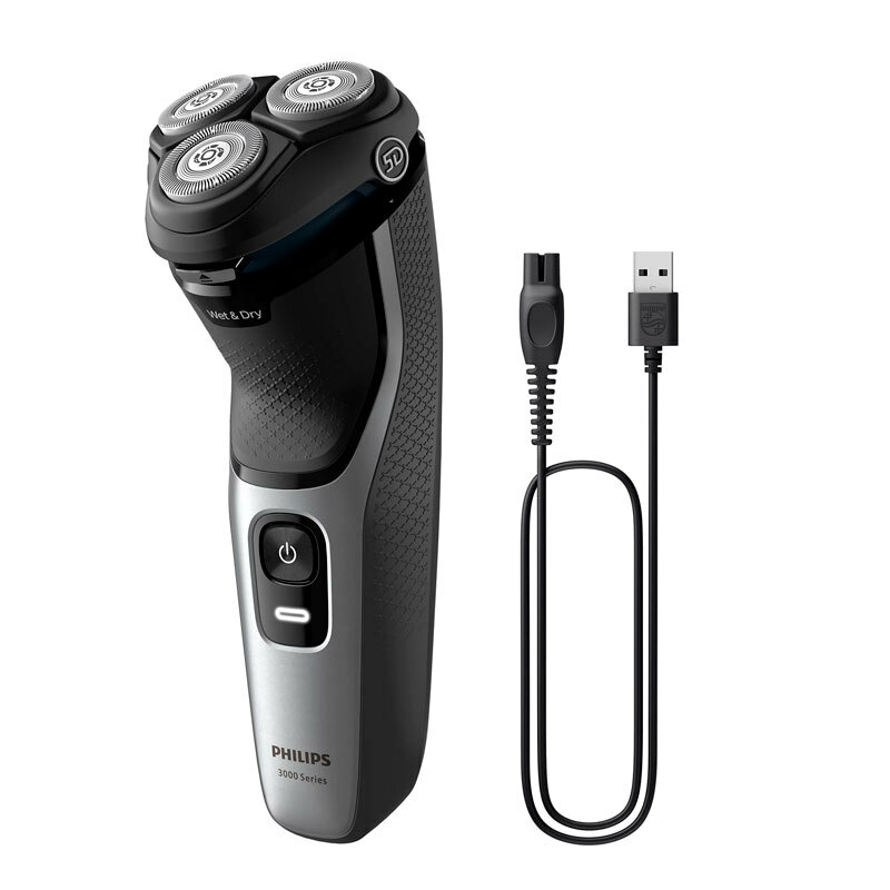 Afeitadora Philips S3143/02 de la Serie 3000 diseñada para un afeitado cómodo y apurado en pieles sensibles tanto en seco como en húmedo. Incluye sistema PowerCut con 27 cuchillas autoafilables, cabezales pivotantes 5D, batería de iones de litio de larga duración y recortador desplegable.