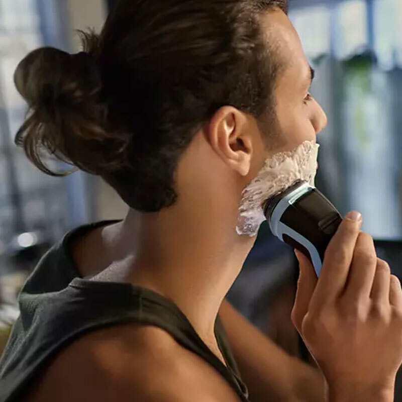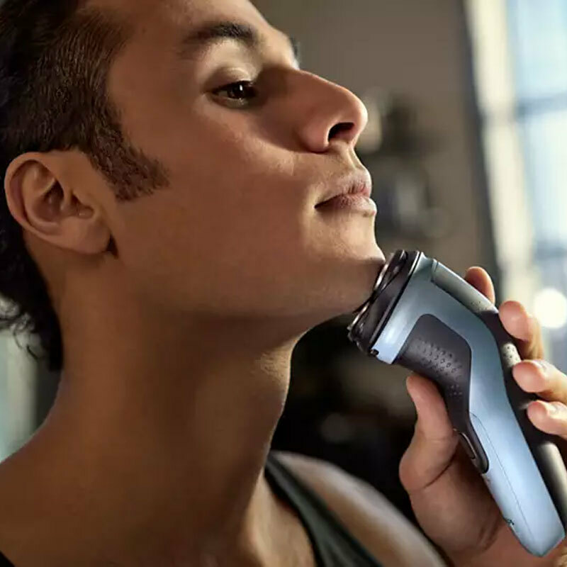 Afeitadora Philips X3003/00 de la serie 3000X diseñada para un afeitado cómodo y apurado. Incorpora 27 cuchillas PowerCut autoafilables, cabezales flexibles 4D y resistencia IPX7 para uso húmedo o seco. Ofrece 40 minutos de autonomía tras 1 hora de carga y cortapatillas desplegable.