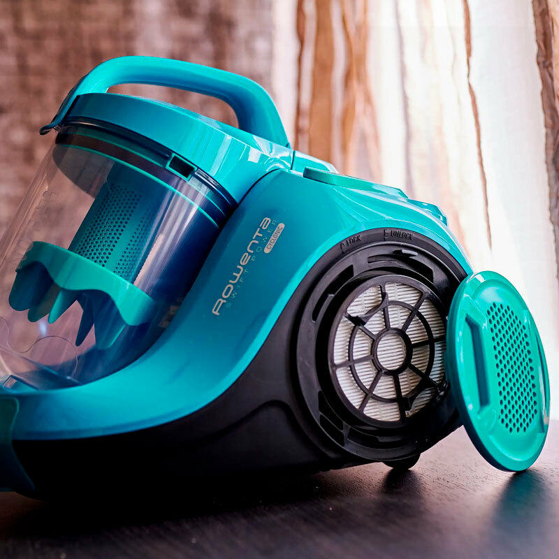 Compacta y de alto rendimiento, la aspiradora sin bolsa Rowenta RO2932EA combina tecnología ciclónica Swift Power Cyclonic con un depósito de 1,2 L y un sistema de triple filtrado que captura el 99,98% de las partículas. Motor eficiente, accesorios para parqué y boquilla 2 en 1 que facilitan una limpieza versátil y un almacenamiento cómodo.