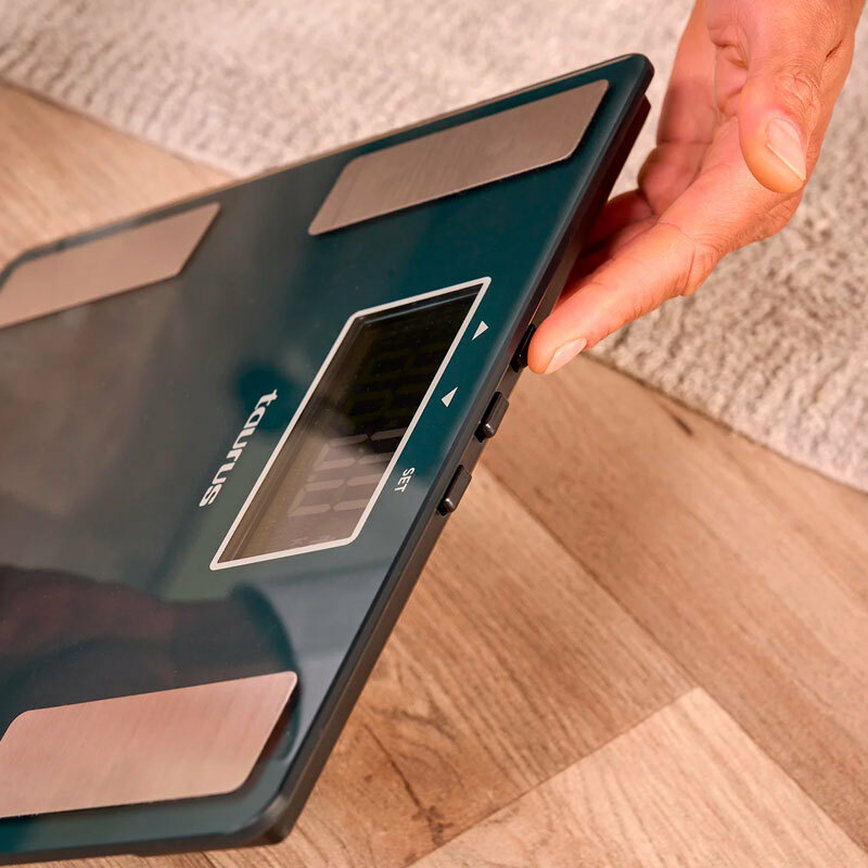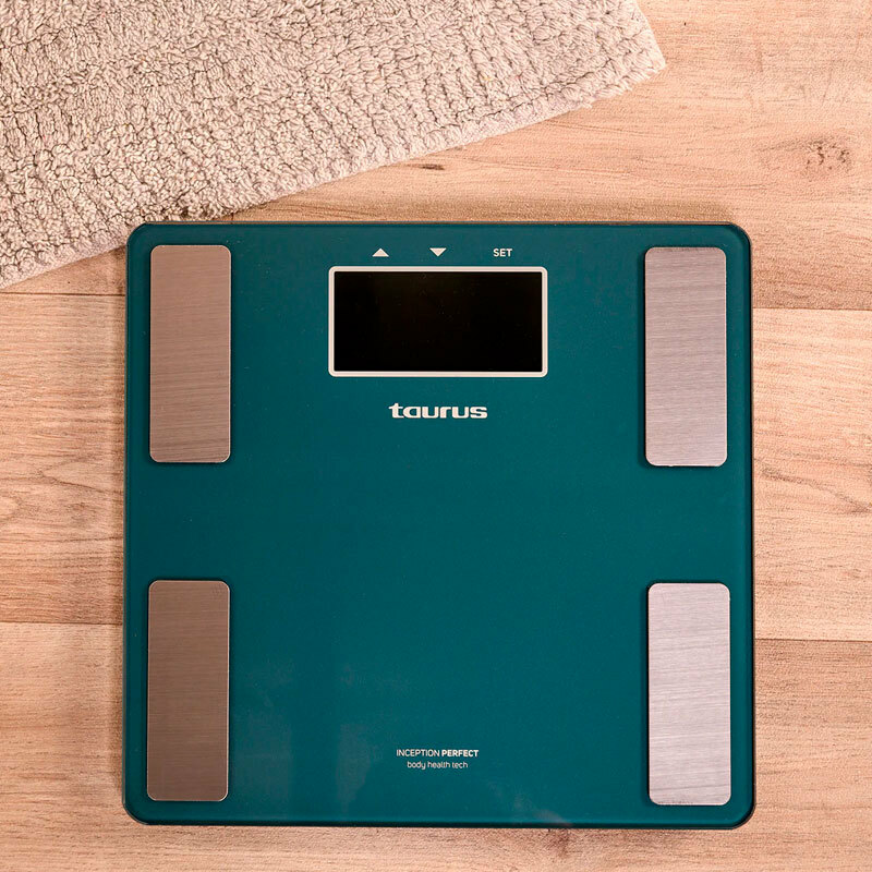 Báscula inteligente Taurus Inception Perfect – Análisis corporal, Precisión 0,1 kg, Cristal templado
