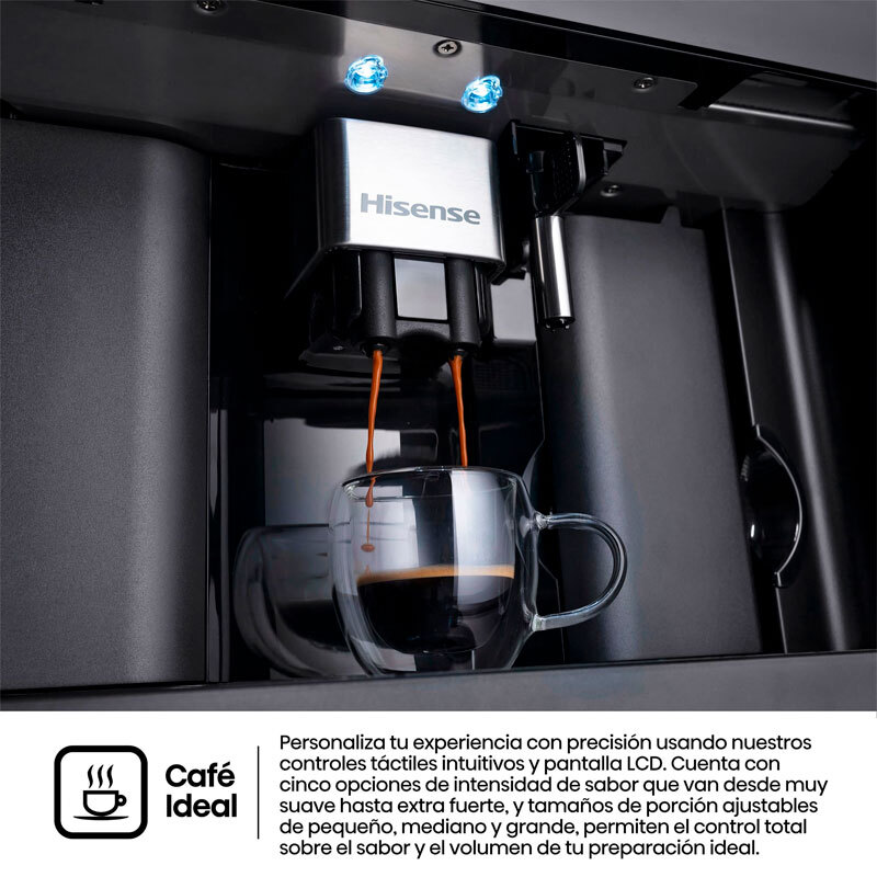 Cafetera superautomática integrable Hisense CM4H8BG – Molinillo integrado, Jarra de leche, Autolimpieza
