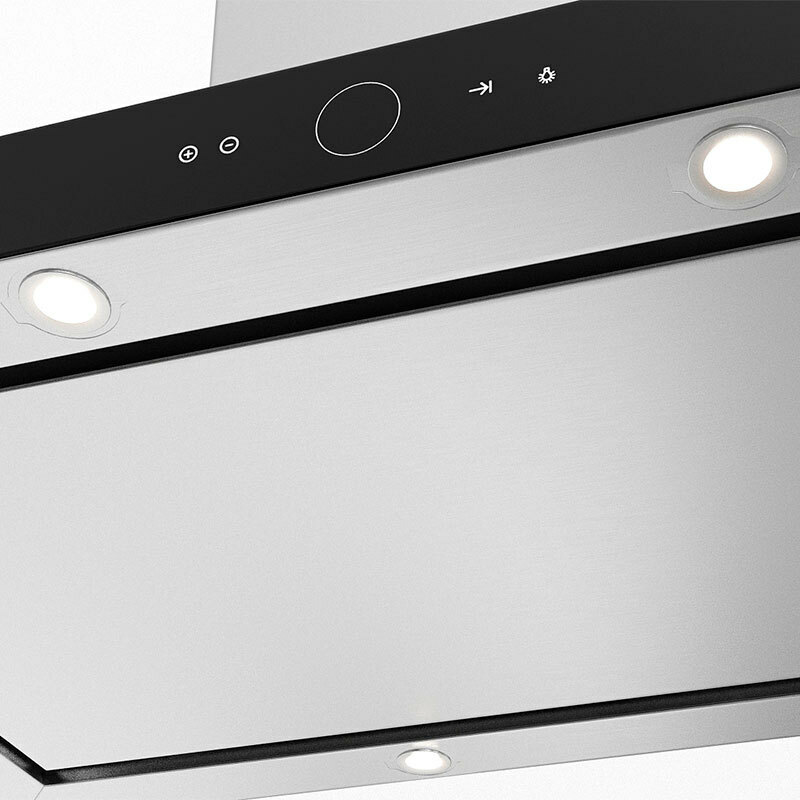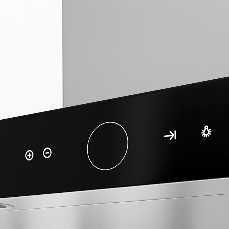 Campana de isla Teka DPL ISLA 1185 en cristal negro y acero inoxidable, diseñada para ofrecer extracción eficiente y silenciosa mediante motor ECOPOWER y aspiración perimetral Contour. Incorpora mandos táctiles, 3 velocidades más intensiva, 4 LED y filtros metálicos aptos para lavavajillas.