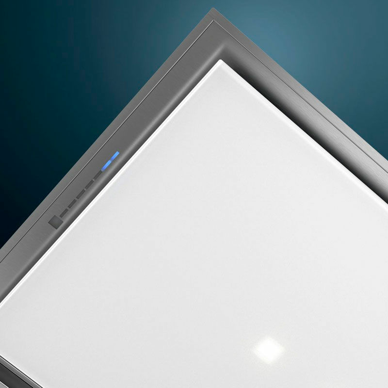 Campana de techo Siemens LR97CBS20 diseñada para ofrecer extracción potente y eficiente en cocinas de gran tamaño. Motor iQdrive silencioso y conectividad Home Connect facilitan su uso remoto. Acabado en cristal blanco y cuerpo inox para una limpieza sencilla, iluminación LED regulable, filtros lavables y modos de evacuación o recirculación garantizan un rendimiento versátil y fiable.