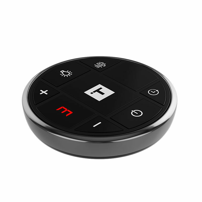 Campana de integración al techo Teka DHT 97670 ROS WH en acabado blanco con panel de cristal. Incorpora aspiración perimetral y motor ECOPOWER con capacidad hasta 808 m³/h, 4 velocidades + 2 intensivas, mando a distancia, temporizador e iluminación LED regulable para una extracción eficiente y silenciosa.