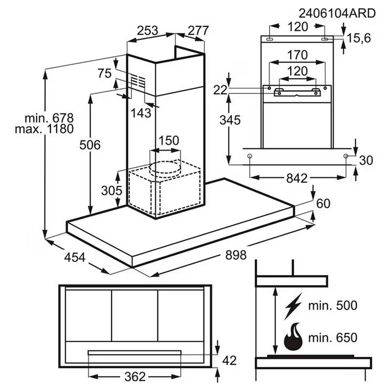Campana extractora decorativa AEG GB67D91HL – 90 cm, 730 m³/h, Clase A