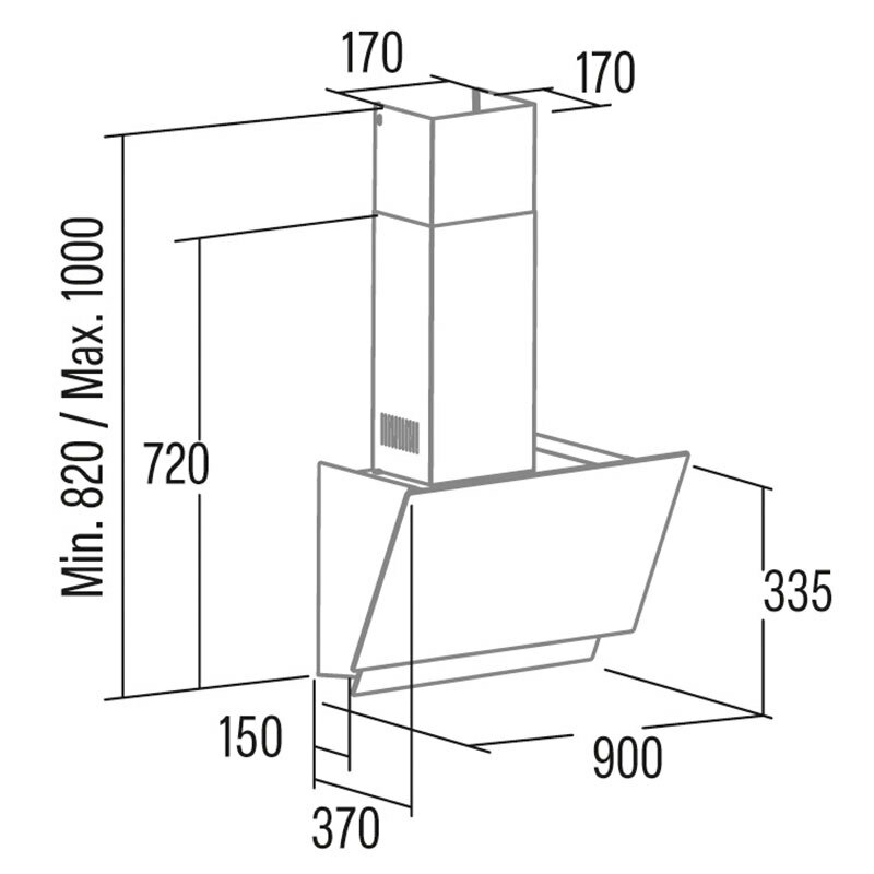 Campana decorativa de pared Cata JUNO 9000 GBK – 90 cm, 428 m³/h, A+