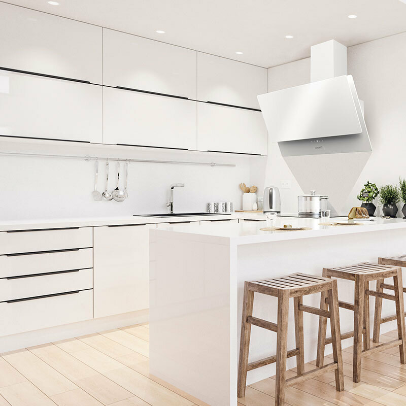 La campana decorativa Cata JUNO+ 7000 GWH de 70 cm combina diseño en cristal blanco con motor brushless de bajo consumo y extracción máxima de 562 m³/h. Dispone de control táctil con display digital, seis niveles (incluye turbo), iluminación LED regulable y filtros metálicos lavables, ofreciendo eficiencia A+ y bajo nivel sonoro para un ambiente de cocina más limpio y confortable.