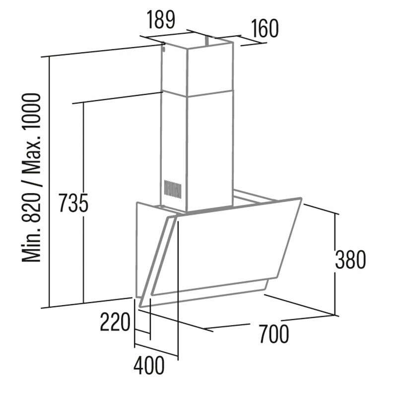 Campana decorativa de pared Cata JUNO+ 7000 GWH – Cristal blanco, 562 m³/h, Clase A+