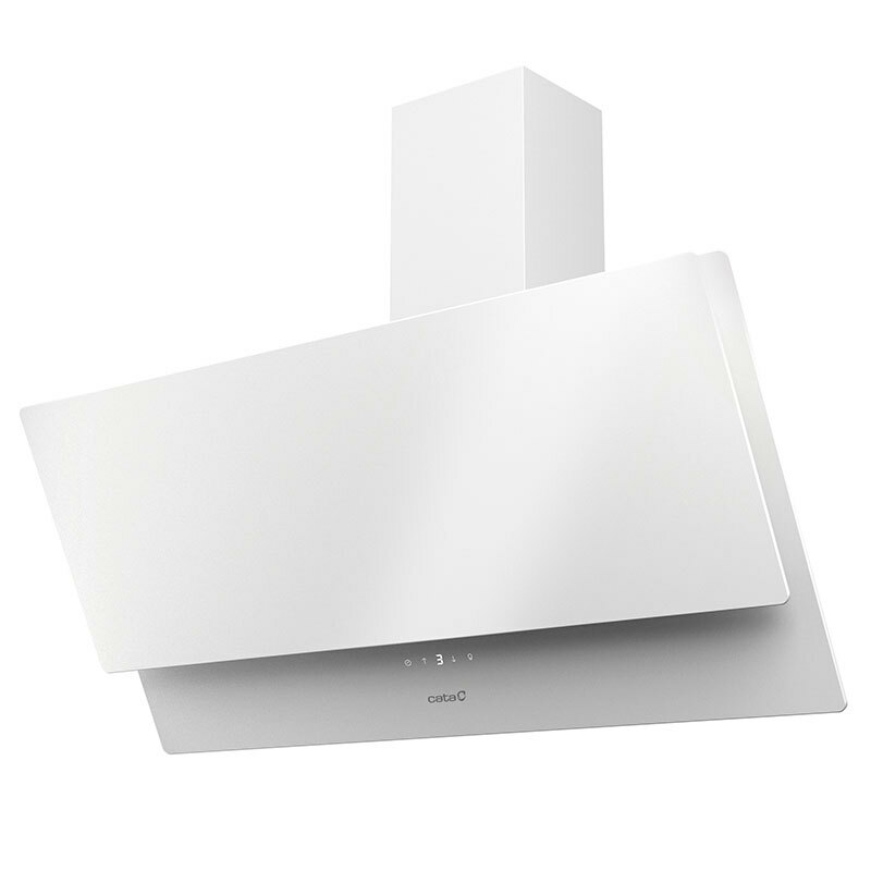 La campana decorativa CATA JUNO+ 9000 GWH de 90 cm blanco combina extracción potente y eficiencia con motor brushless y 6 niveles más turbo hasta 562 m³/h. Control táctil con display y temporizador, iluminación LED 5 W, filtros de malla de aluminio lavables y opción de recirculación. Diseño de cristal con apertura neumática para instalación en pared.