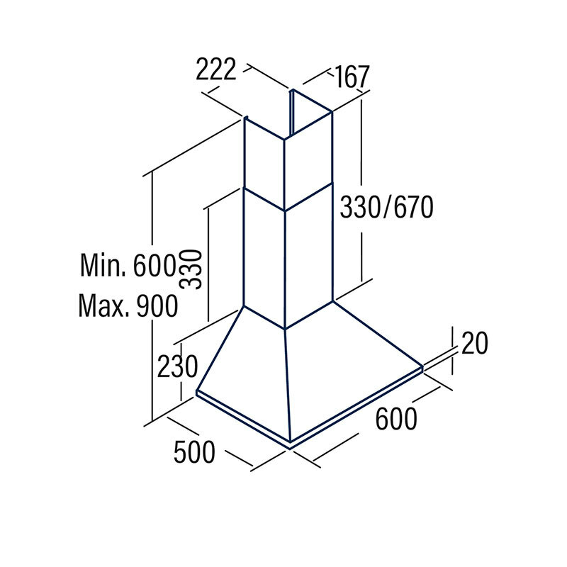 Campana decorativa Cata OMEGA 600 BK/L en acabado negro diseñada para cocinas domésticas. Ofrece hasta 645 m³/h de extracción según EN‑61591, motor de 273 W con 3 velocidades, iluminación LED de alta eficiencia y filtros de malla de aluminio lavables. Funcionamiento mixto (evacuación o recirculación) y control mediante pulsadores para una instalación y uso sencillos.