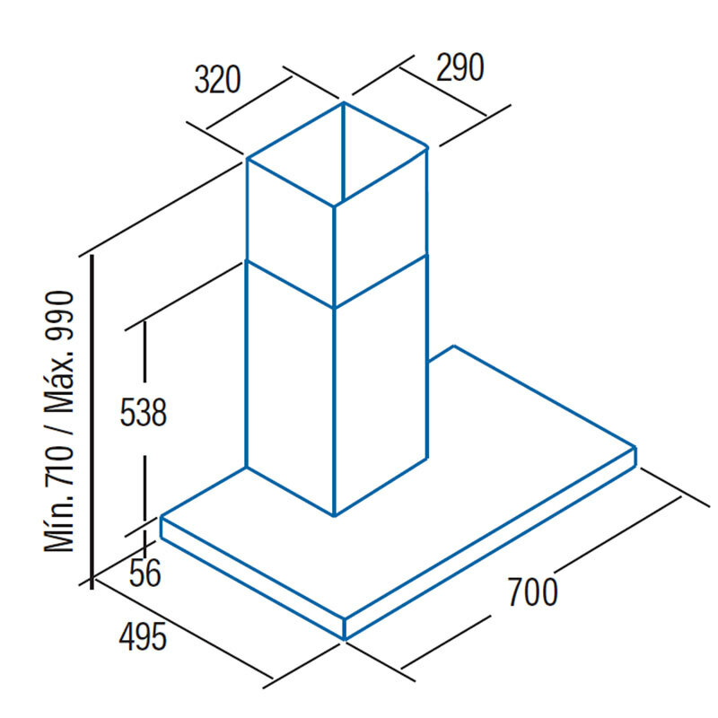 Campana decorativa de pared Cata S PLUS 7010 X – 70 cm, 637 m³/h, Inox