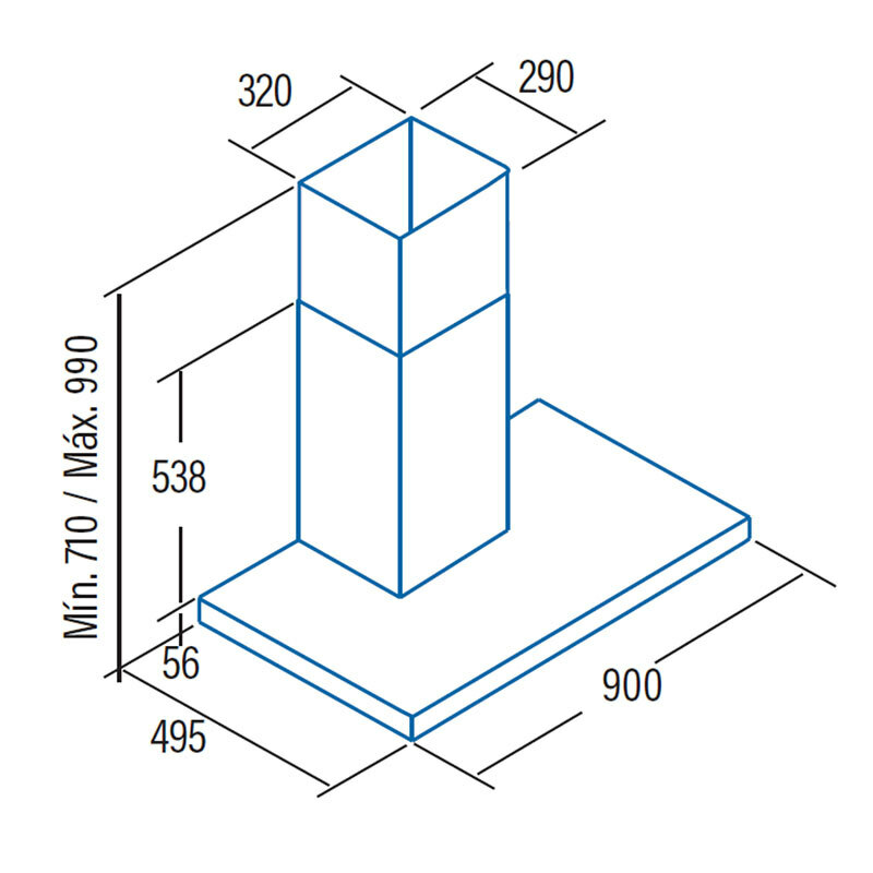 Campana decorativa Cata S PLUS 9010 X de 90,0 cm en acabado inox diseñada para una extracción eficiente de hasta 637 m³/h. Dispone de 3 velocidades, iluminación LED, motor de 270 W, filtros metálicos lavables y opción de recirculación o salida al exterior. Clase energética C y niveles de ruido entre 69 y 74 dB para un rendimiento equilibrado y una instalación sencilla.