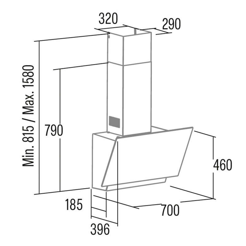 Campana decorativa de pared Cata Thalassa 700 GBK/G – 70 cm, 811 m³/h, Control táctil LED