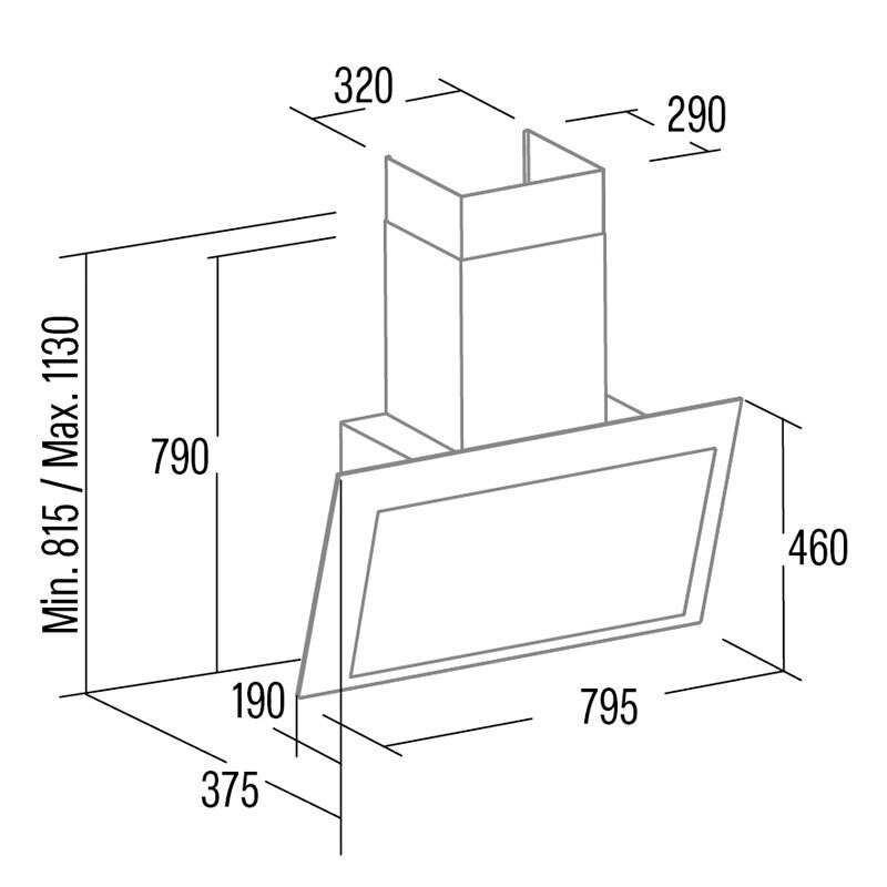 Campana decorativa Cata THALASSA EVO 800 GBK – 80 cm, 1.016,5 m³/h, Clase A++