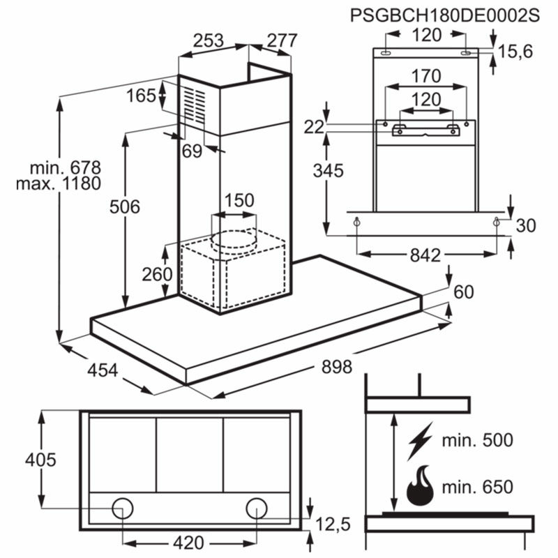 Campana decorativa de pared Electrolux LFT769X – 720 m³/h, Clase A, Control táctil
