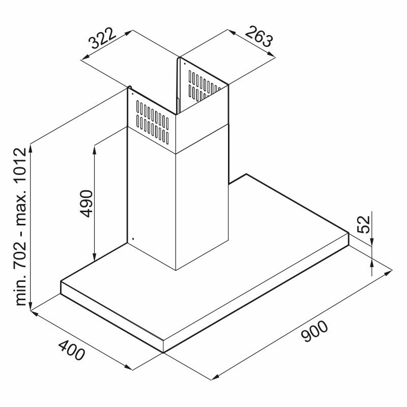 Campana decorativa Fagor 3CFS-9050N en acabado inox con frente de cristal negro y 90 cm de anchura. Proporciona hasta 690 m³/h de extracción con 4 velocidades y función turbo, motor de 260 W y iluminación LED. Panel táctil, 3 filtros de aluminio lavables y funcionamiento en recirculación para reducir humos y olores con eficiencia energética clase B.