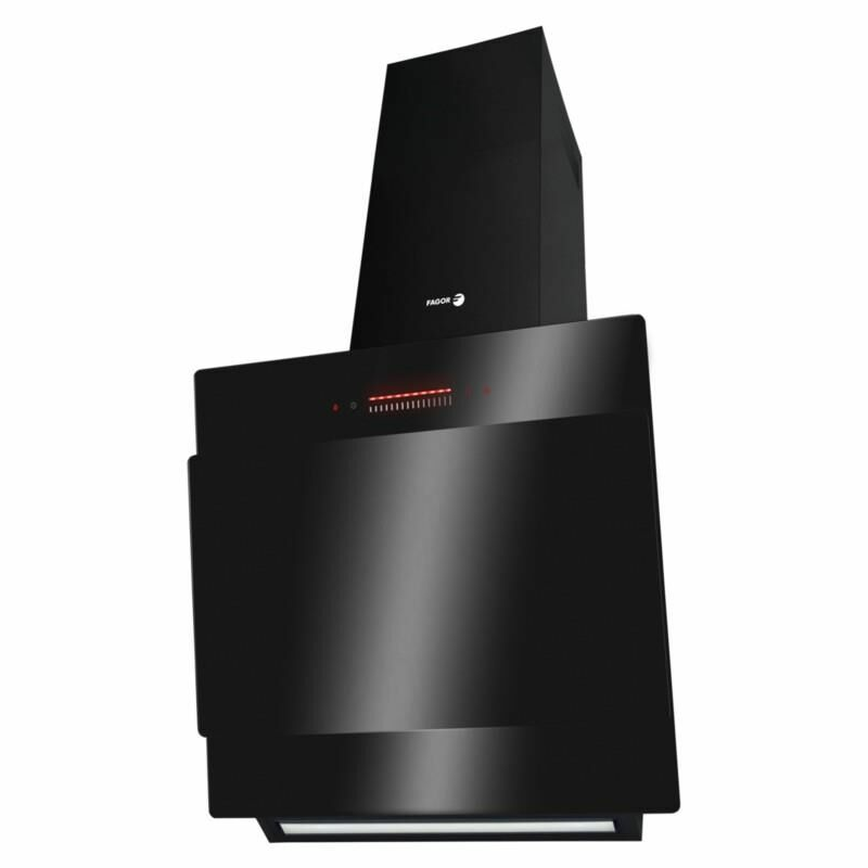Campana decorativa pared Fagor 3CFT-6051N – 565 m³/h, Cristal negro, Filtro aluminio lavable