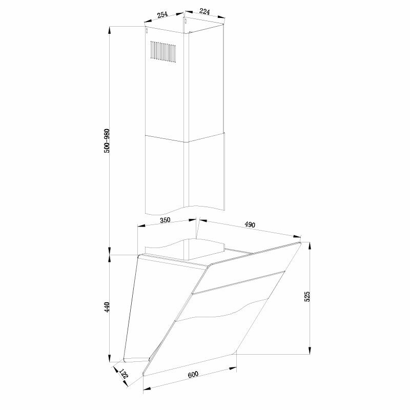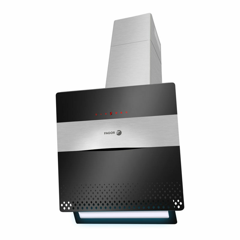 Campana inclinada de pared Fagor 3CFT-610N – 728 m³/h, Clase A, Cristal negro