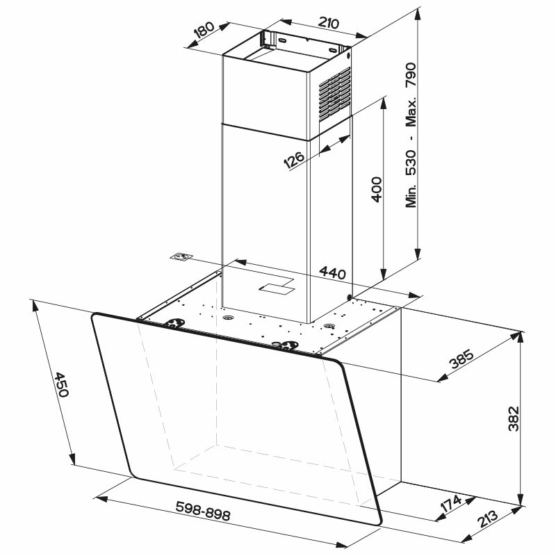 Campana decorativa de pared Mepamsa 330.0577.461 – 90 cm, 600 m³/h, extracción mixta
