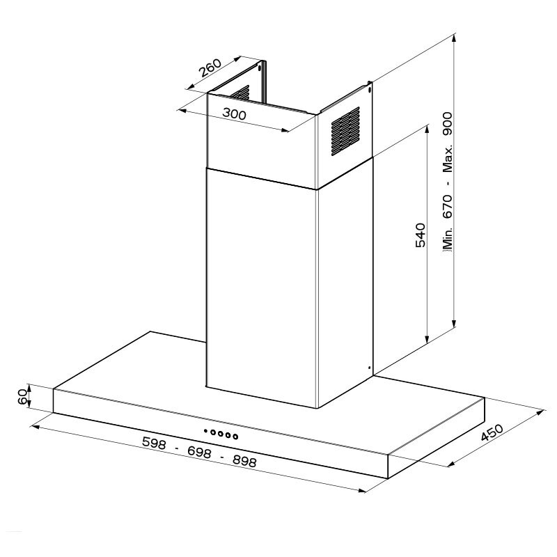 La campana decorativa Mepamsa STILO NEO 90 en blanco mate ofrece extracción potente y eficiente con hasta 710 m³/h en modo intensivo y clasificación energética B. Diseñada para instalación mural, incorpora filtro antigrasas de acero inoxidable, iluminación LED 4000 K, tres velocidades más intensiva y mandos pulsadores que facilitan su uso y mantenimiento.