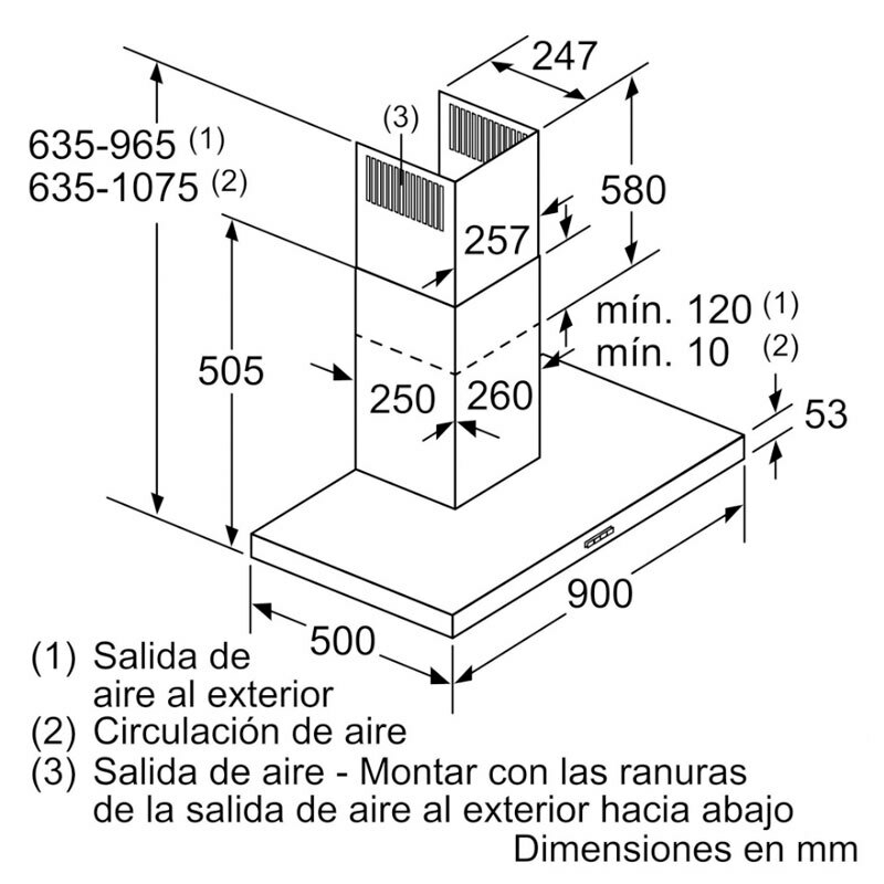 Campana decorativa de pared Siemens LC96BBC60 – 619 m³/h, 90 cm, Negro
