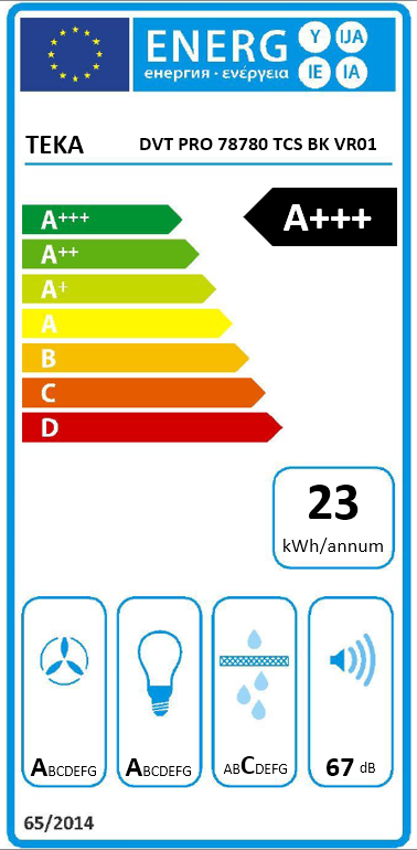 Campana decorativa Teka DVT PRO 78780 TCS en cristal negro de 70 cm diseñada para extracción perimetral eficiente. Clase energética A+++, motor EcoPower de 160 W, 3 velocidades más intensiva y función FreshAir. Iluminación LED, mandos táctiles y filtros metálicos extraíbles aptos para lavavajillas.