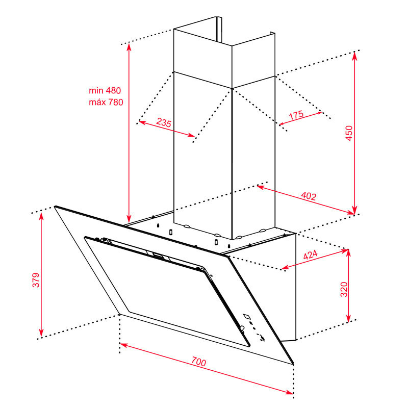 Campana decorativa de pared Teka DVTPRO78780TCS – 70 cm, A+++, 786 m³/h