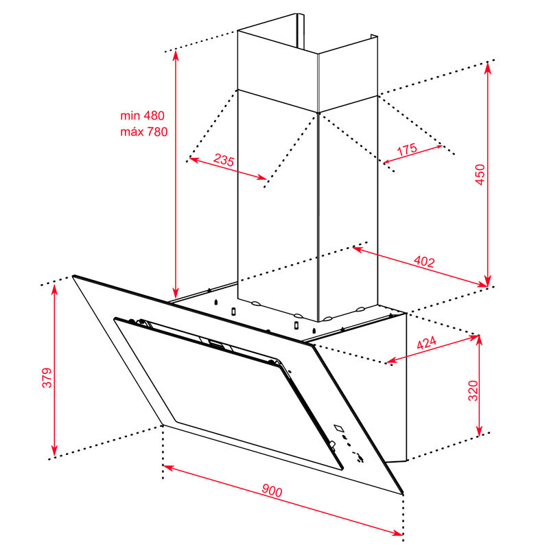 Campana decorativa de pared Teka DVT PRO 98780 TCS – 90 cm, A+++, 786 m³/h