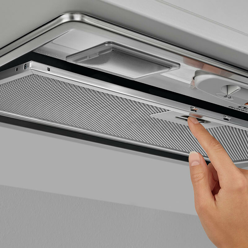 Campana extractora integrable Electrolux LFG235S de 52 cm diseñada para una extracción eficaz de humos y olores con capacidad máxima de 330 m³/h y tres niveles de potencia. Su acabado en acero inoxidable, iluminación LED y filtro de aluminio lavable ofrecen limpieza sencilla, funcionamiento silencioso y eficiencia energética clase C.