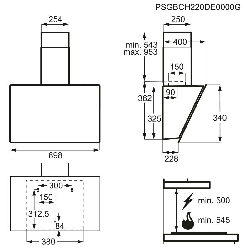 Campana extractora pared Electrolux LFV439K – 615 m³/h, Cristal negro inclinado, Controles táctiles Hob2Hood