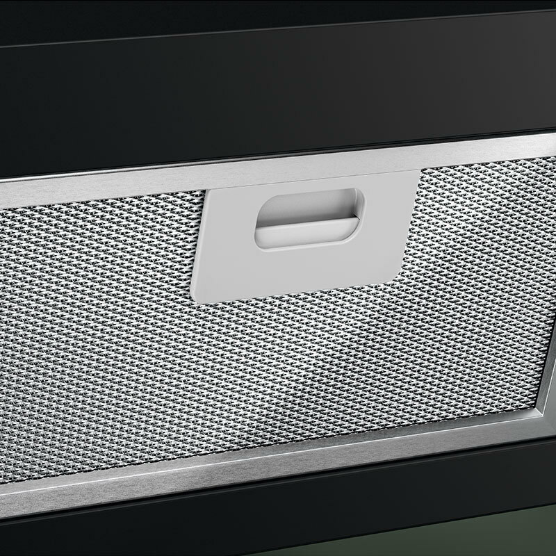 La campana Electrolux LFV439K ofrece extracción potente y eficiente hasta 615 m³/h combinando diseño inclinado en cristal negro con controles táctiles Hob2Hood para sincronizarse con el vitrocerámico. Incorpora iluminación LED, filtros metálicos aptos para lavavajillas y función recirculación o salida al exterior con avisos de mantenimiento.