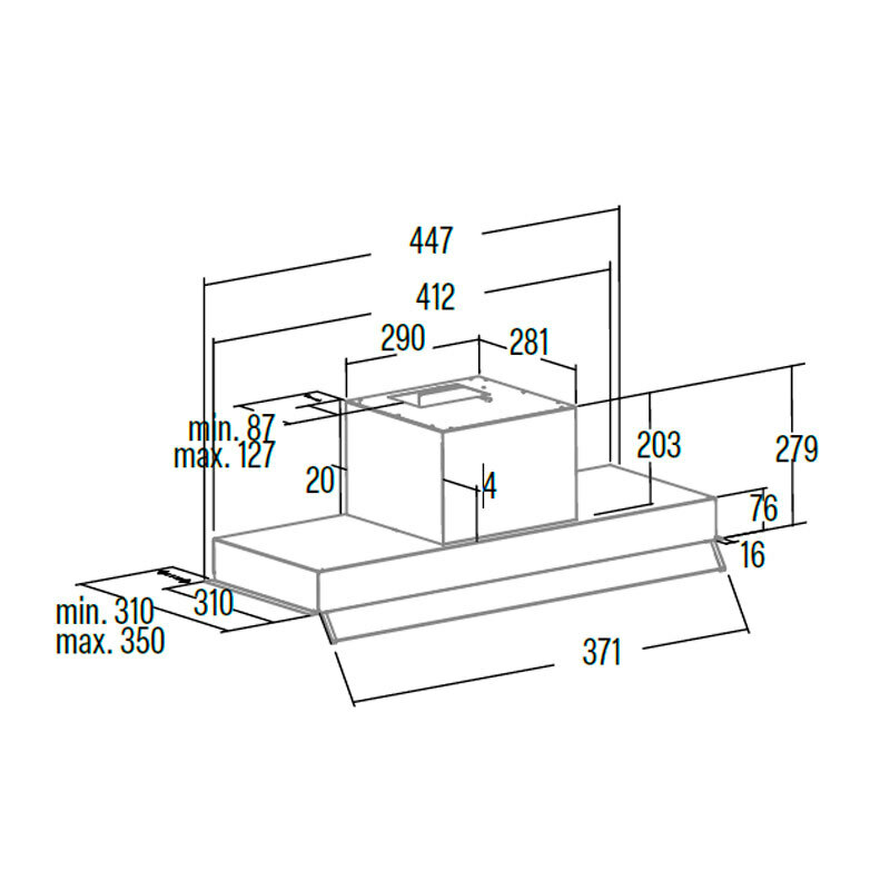 Campana Integrable CATA ARMONIA 45 X – 645 m³/h, Bajo mueble, Inox