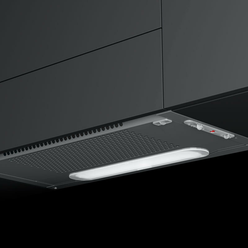 Campana integrable Teka de 60 cm para instalación bajo mueble que ofrece tres velocidades con mandos deslizantes, iluminación LED y filtro metálico extraíble apto para lavavajillas. Capacidad máxima 230 m³/h y motor de 120 W, eficiencia energética clase D, bajo nivel sonoro y mantenimiento sencillo.