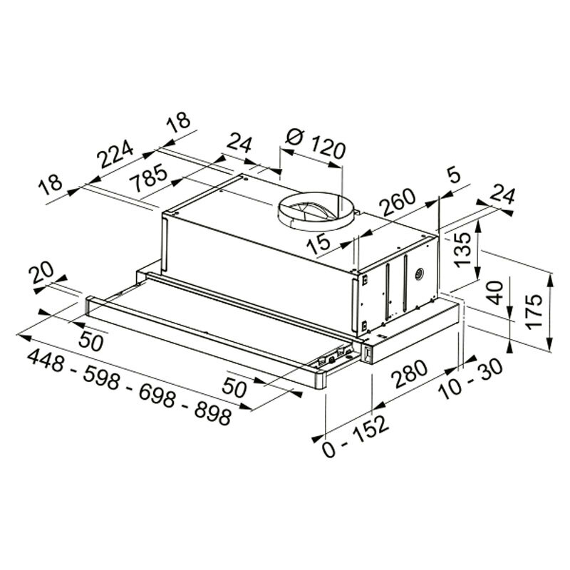 Campana extractora telescópica Mepamsa Superline 90 Inox V2 – 90 cm, 380 m³/h, Bajo mueble