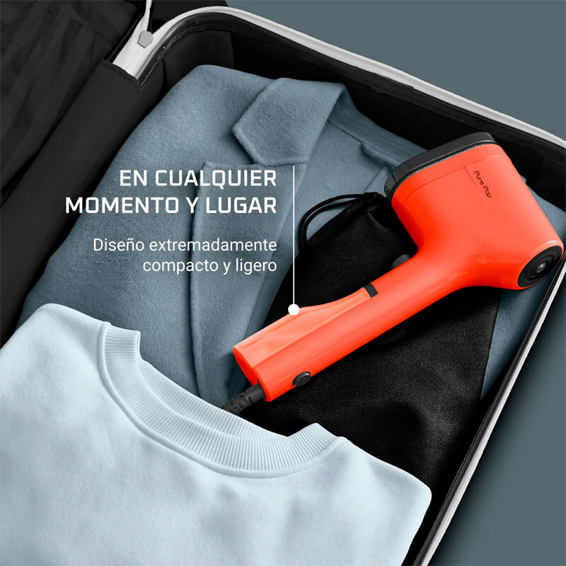 Dispositivo compacto y ligero para el cuidado rápido de prendas. La Plancha vertical Rowenta DR2022D1 Pure Pop ofrece 1300 W y vapor continuo de 20 g/min, depósito de 70 ml y calentamiento en 15 segundos. Su cabezal reversible quitapelusas/terciopelo elimina arrugas y pelusas y el vapor higieniza tejidos. Ideal para viajes y retoques.