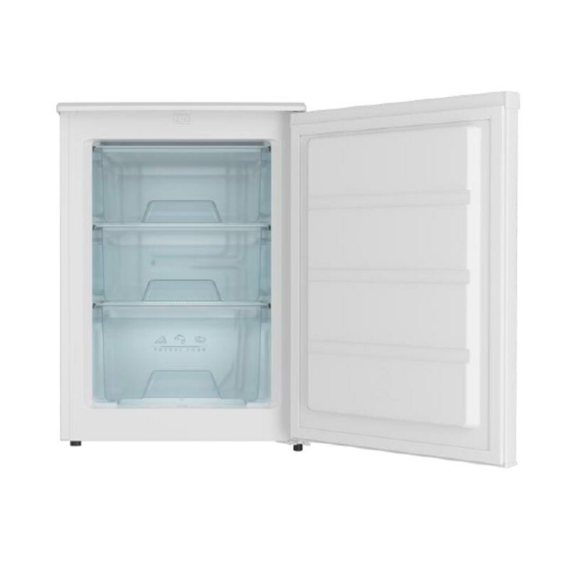 Congelador bajo encimera TEKA RSF 10080 EU en color blanco diseñado para instalación libre. Dispone de motor Inverter de alta eficiencia para menor consumo y funcionamiento silencioso, control mecánico, descongelación manual y tres cajones transparentes que facilitan la organización. Puerta reversible, patas regulables y capacidad útil de 86 L, consumo anual reducido y clasificación de 4 estrellas para una conservación segura.