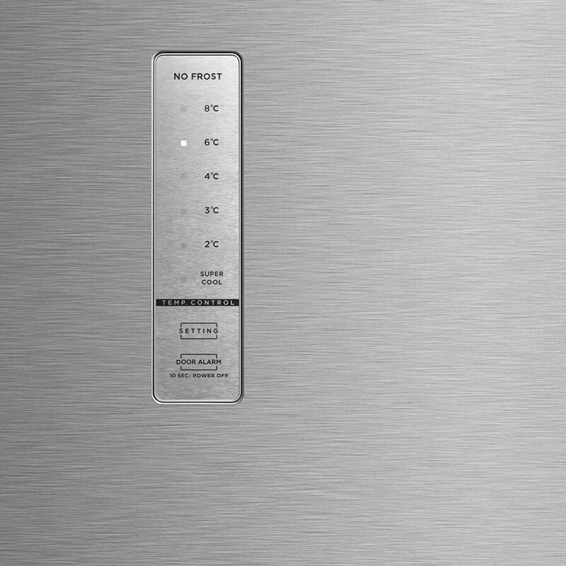Congelador vertical de libre instalación en acabado inox diseñado para conservación eficiente con tecnología Full No Frost y control electrónico con display exterior. Ofrece 273 L de capacidad bruta, función de congelación rápida, puerta reversible y bajo nivel sonoro, combinado con una clasificación energética E para uso doméstico exigente.