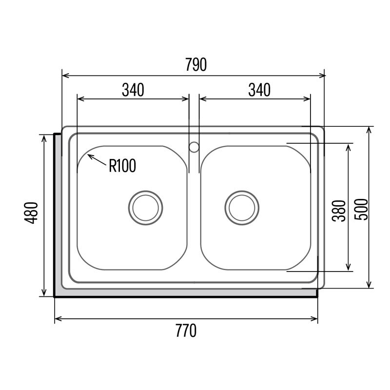 Fregadero Cata C-2 AG /C en acero inoxidable AISI 304 diseñado para instalación sobre encimera en mueble mínimo de 80,0 cm. Dispone de dos cubetas cuadradas de 20,0 cm de profundidad y grosor de chapa 0,8 mm que aportan resistencia, higiene y fácil mantenimiento. Incluye rebosadero, sifón y accesorios de fijación.