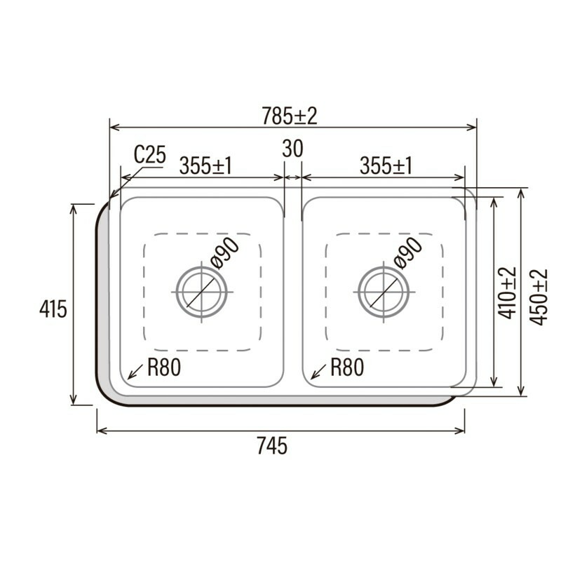 Fregadero doble cubeta Cata CB-2 – bajo encimera, acero inox AISI 304, 2 cubetas