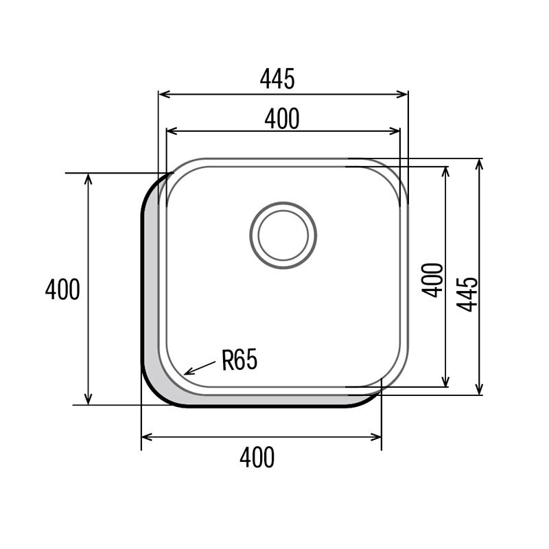 Fregadero Cata CBP 40-40 /B en acero inoxidable AISI 304 con acabado cepillado, pensado para instalación bajo encimera en mueble de 50,0 cm. Cubeta cuadrada de 44,5 x 44,5 cm y 20,0 cm de profundidad con espesor 0,8 mm y rebosadero incluido, ofrece durabilidad, higiene y fácil mantenimiento.