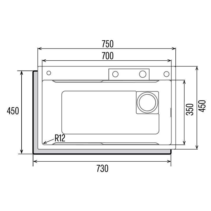 Fregadero Cata CDC X en acero inoxidable AISI 304 con acabado negro mate, de una cubeta rectangular y profundidad de 20,0 cm. Diseñado para instalación sobre encimera en mueble de 80,0 cm, ofrece mayor robustez por su grosor de chapa y dimensiones compactas 750 x 450 mm. Incluye tubo rebosadero y corte de encimera 730 x 450 mm, facilitando su instalación y mantenimiento.