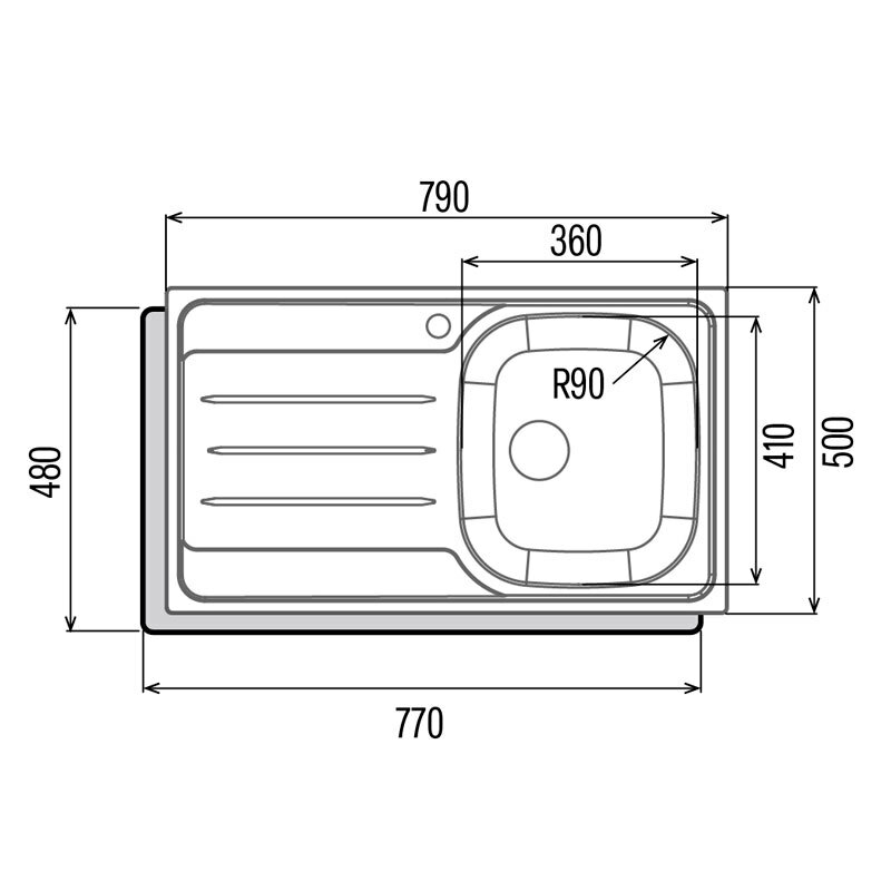 Fregadero sobre encimera Cata CDL1EI/A – Acero inoxidable, 79 x 50 cm, Escurridor izquierdo