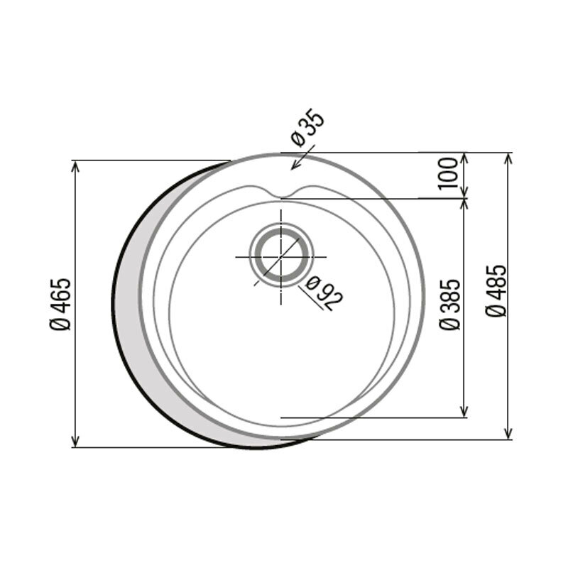 Fregadero Cata RS-1 /A fabricado en acero inoxidable AISI 304 de alta resistencia, destinado a instalación sobre encimera. Incluye una cubeta redonda profunda con rebosadero integrado y válvula canasta 3 1/2". Su grosor de 0,7 mm, accesorios de fijación incluidos y compatibilidad con mueble desde 45 cm garantizan durabilidad, higiene y mantenimiento sencillo en cocinas domésticas.
