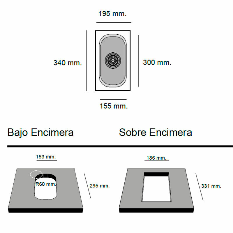 Fregadero 1 seno Poalgi Gandia 15 (SS161) – Roc Stone® negro, Bajo encimera, Antibacteriano