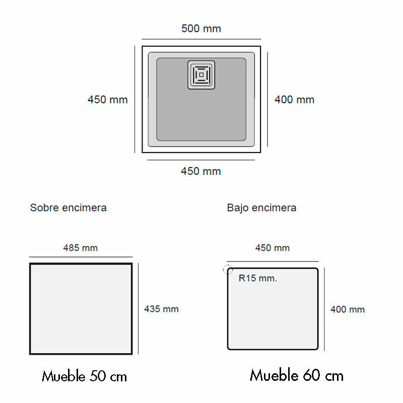 Fregadero bajo encimera Poalgi Zie 45 1/S – Blanco, cubeta profunda, antibacteriano