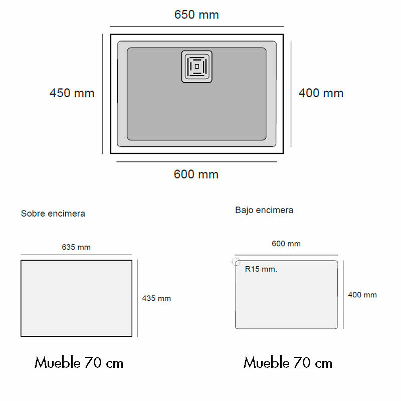 Fregadero 1 seno Poalgi Zie 60 1/S – Bajo encimera, Granito Hekla®, 65 cm