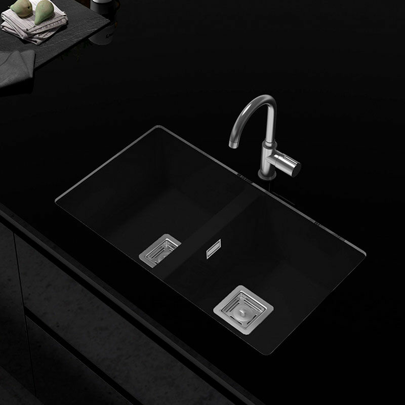 Fregadero doble seno Poalgi Zie 70 2C – Bajo encimera, Negro brillo, Roc Stone® antibacteriano