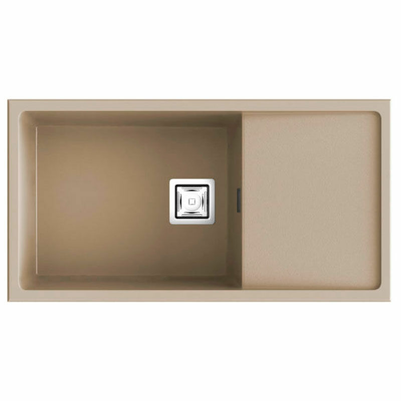 Fregadero bajo encimera Poalgi Zie 81 1/S+E – Roc Stone® antibacteriano, 1 seno con escurridor reversible, Beige