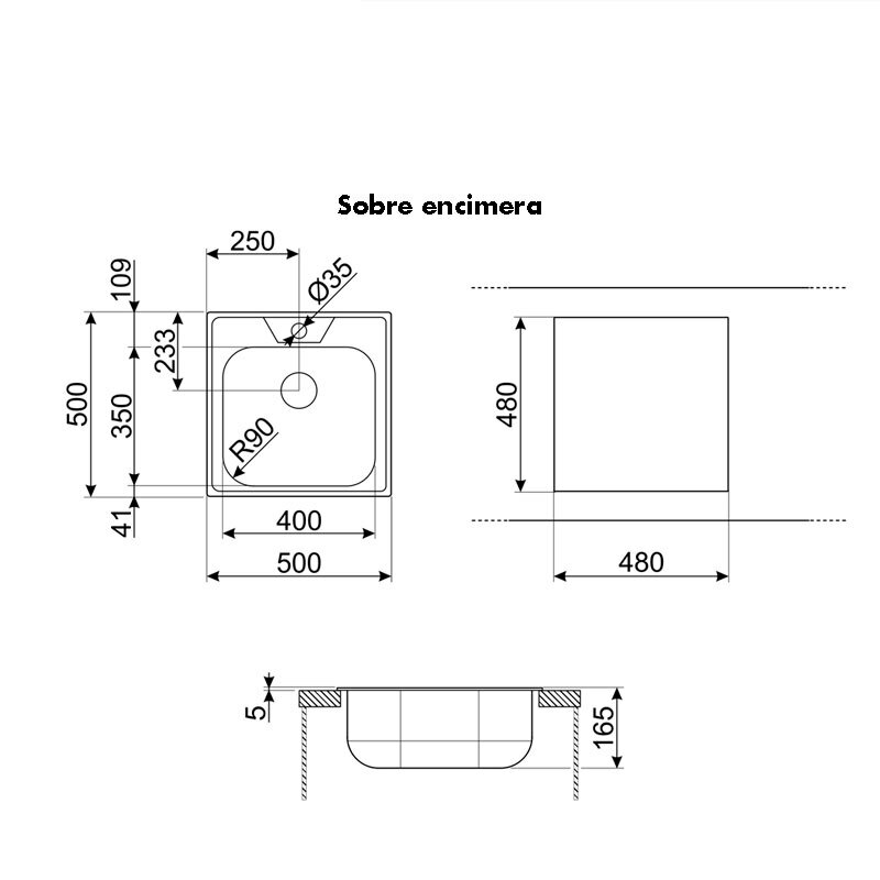 Fregadero de cocina Smeg LYP501 – Encastrable, Acero Inox AISI 304, 1 cubeta 16,5 cm